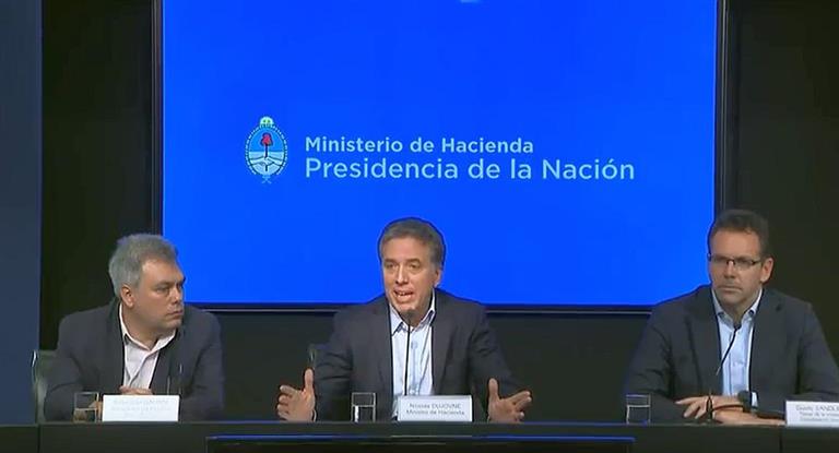 Luego de que el presidente Mauricio Macri anunciara el retorno de las negociaciones con el FMI, el ministro recordó que el estar integrados al mundo tiene sus beneficios, pero también sus contra, porque "estamos expuestos a la volatilidad de los mercados".