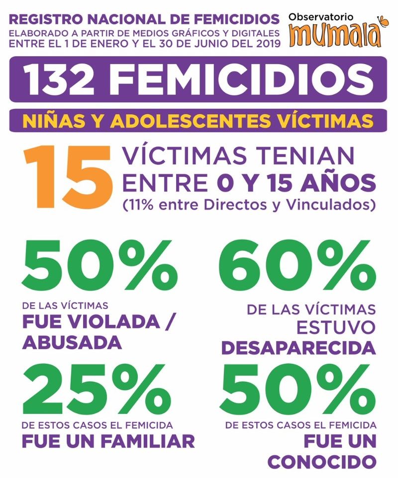 En los primeros 6 meses de 2019, 132 mujeres perdieron la vida en manos de la violencia machista, según un estudio del Observatorio MuMaLá (Mujeres de la Matria Latinoamericana). De ese dato se desprende que una mujer es asesinada cada 33 horas.