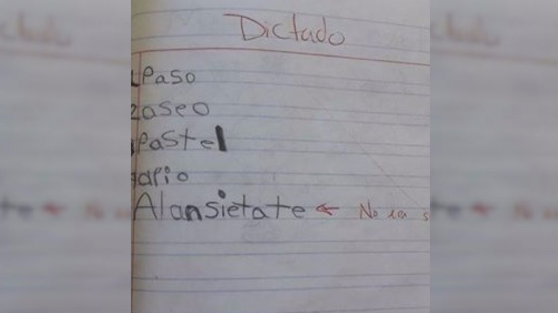 Según ve en la publicación, las palabras que dictó el profesor fueron: paseo, aseo, pastel, apio y "Alan siéntate" (sic). Evidentemente, el compañerito se portó mal durante la evaluación y el docente lo retó. Nunca se imaginó que otro alumno lo iba a tomar como parte del dictado.