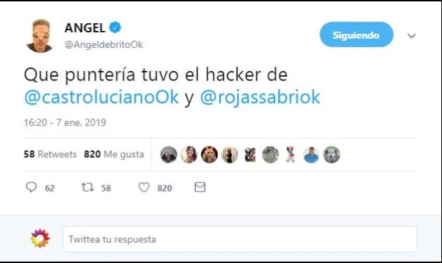 Con la noticia confirmada de la ruptura, esta declaración toma otro cariz y fue le propio Ángel de Brito el que posteó en Twitter un sugerente mensaje: “Qué puntería tuvo el hacker”.