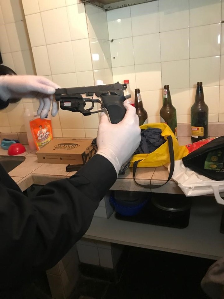 Esta noche, la Policía Federal allanó su casa en Virrey Ceballos al 200 y encontró armas, entre ellas, un revólver calibre 32, otro 380, municiones y un rifle de aire comprimido.