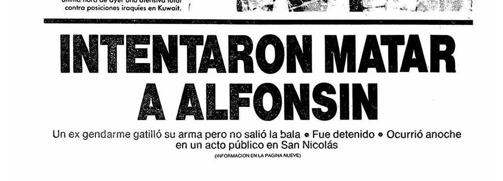 Abdalá sacó su revólver, disparó, y la detonación tapó la voz de Alfonsín. Con el índice de su mano derecha, el muchacho apretó el gatillo, el percutor accionó sobre la munición y, sin embargo, el tambor no giró. La bala, esa noche, se quedó sin ir al blanco.