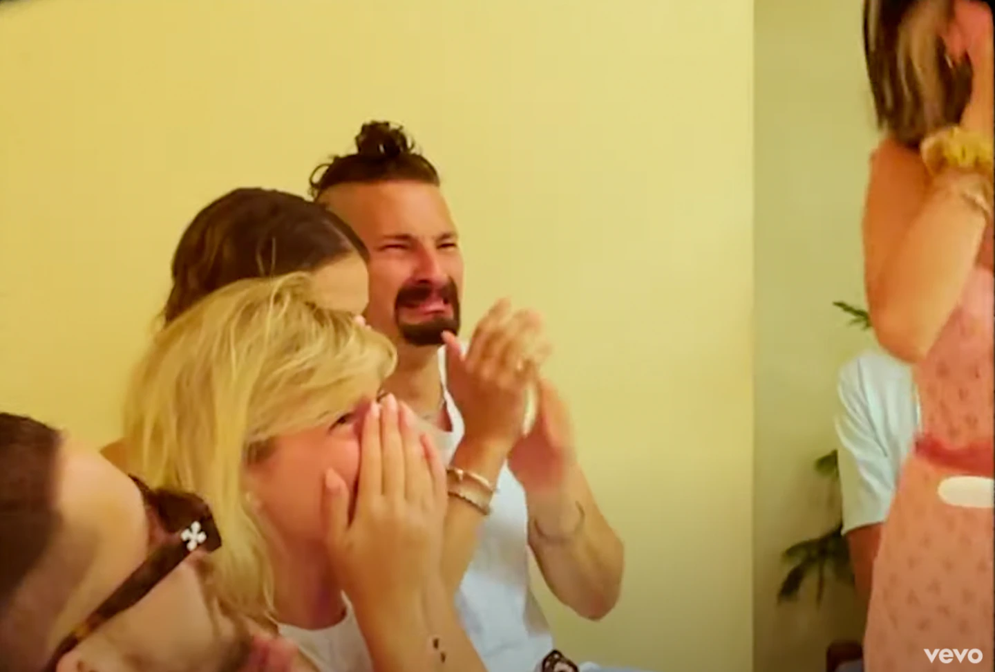 A partir de las grabaciones caseras podemmos conocer cómo actuaron cuando se enteraron de la feliz noticia. Dentro del videoclip de “Indigo” se puede ver el instante en el que Evaluna y Camilo convocan a toda la familia y, de un momento a otro, muestran el test de embarazo. Todos los participantes se vieron visiblemente emocionados y fueron Mau y Stefi Roitman quienes rompieron en llanto al instante.
