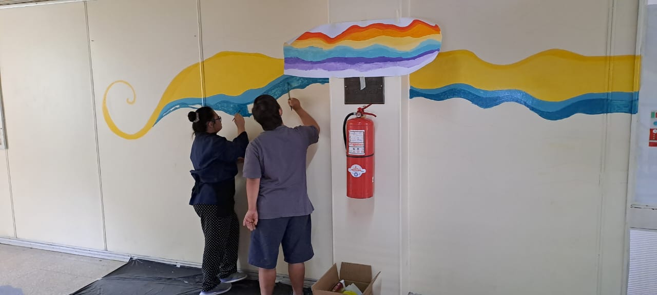Esta es una iniciativa del Proyecto de Arte Inclusivo que desde hace años es parte de las instancias que se proponen en la Escuela de Educación Especial Aleluya-Anexo Centro Vida Nueva, que dependen de Arid (Asociación para la Realización e Inclusión de las personas con Discapacidad). Sus verdaderos protagonistas son personas con discapacidad intelectual que tienen entre 18 y 40 años. Soledad Basualdo, Alejo Bustos, Ana Laura Caravajal, Juan Diego Chicala, Tamara Gélvez, Valentina Gremoliche, Camila Martín, María Victoria Moya, María Teresa Rodríguez y Martina Vega son los alumnos que todos los miércoles, de 14 a 18, se ocupan de "humanizar con arte" las paredes.
