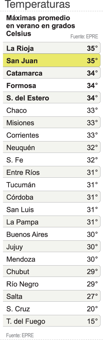 De acuerdo a la última base de datos del EPRE, beneficiará a unos 30.000 hogares, pero puede incrementarse a 40.000, una vez que se actualice el padrón de usuarios registrados en el pedido de conservación del subsidio. ‘Los suministros residenciales en San Juan son 236.190 en total, y entre el 25% y el 30% serán alcanzados por esta medida’, dijo Ferrero. El organismo hizo un estudio comparativo de las temperaturas promedio en distintas capitales que determinó que San Juan tenía un promedio de 35 grados de temperatura en verano, similar a La Rioja (ver infografía). ”Era poco equitativo que provincias con una rigurosidad climática como San Juan tuviese un nivel de consumo con subsidio similar a otras con clima más benigno”, dijo. Agregó que haber incluido a San Juan como Zona calurosa junto a las provincias del norte ”hace a la mejora de calidad de vida de las personas’.
