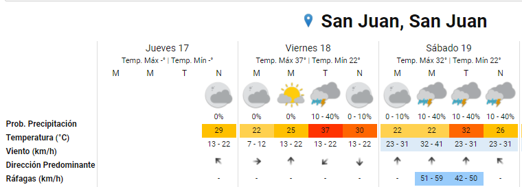 Y durante las horas de mayor calor, el SMN indicó también la probabilidad de lluvias aisladas, dando inicio a una seguidilla de días tormentosos, en los que la temperatura también se verá influenciada. Para el sábado, con una máxima de 32 grados, soplará viento Sur a gran velocidad durante la mañana y la tarde, en tanto que la amenaza de lluvias estará presente durante toda la jornada. Algo similiar está pronosticado para el domingo, en tanto que entre lunes y martes la máxima no superará los 25 grados. El miércoles será transición para el arribo deotros días de calor, auqnue ese día el termómetro llegará a los 28 grados y no figuran probabildiad de lluvias ni de fuertes ráfagas de viento.