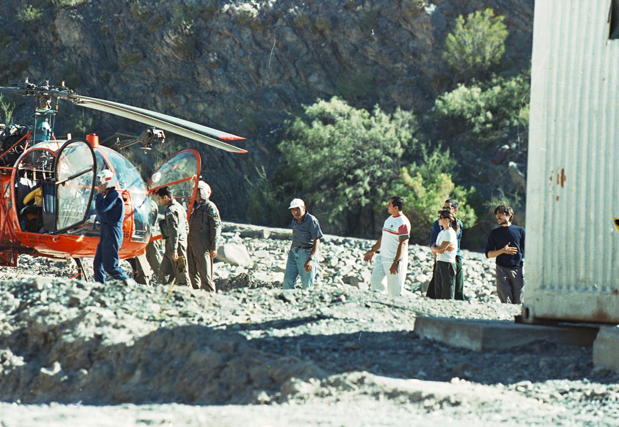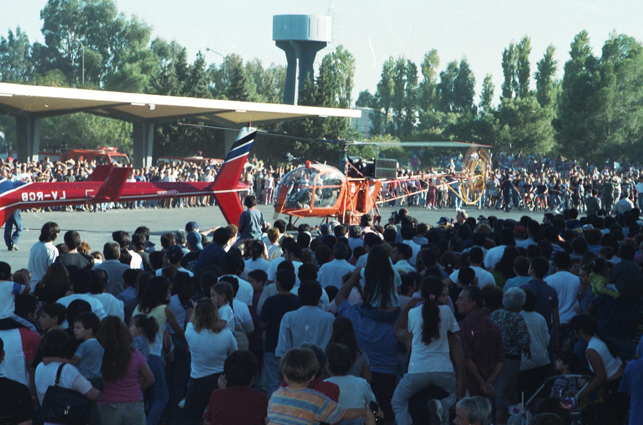 La multitud se acercó a la explanada donde debía aterrizar el helicóptero. Todos atentos, con sus ojos puestos en el cielo, agitando pañuelos, entre nerviosos y alegres. Cuando la nave aterrizó, llegaron los gritos, aplausos y hasta las lágrimas.