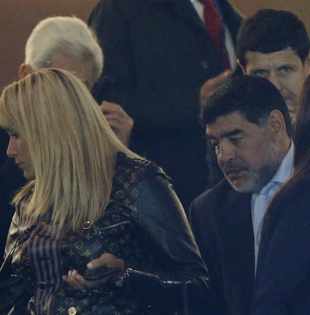 En la cancha, Diego Armando Maradona observó el partido desde la tribuna. Siempre junto a su novia Rocío Oliva y otros allegados. Se lo vio con el rostro serio desde que el Nápoli empezó a sufrir los goles del equipo local. Pero antes, había sido parte de otra historia. Una netamente “maradoniana”… Es que Diego negó que su novia lo haya denunciado por una agresión en un hotel de Madrid, afirmó que todo se trató de un “show mediático” y remarcó que está pasando “un gran momento”.