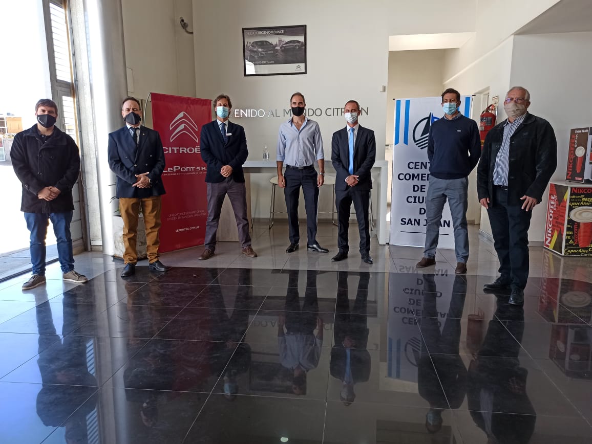 En la jornada de hoy el presidente del Centro Comercial de San Juan, Darío Minnozzi, junto al Gerente General Raúl Albiñana y Gerente Plan de Ahorro Mauro Picco de Citroën Le Pont, firmaron un convenio con el objetivo de brindar importantes beneficios para que todos los socios puedan acceder a un vehículo 0km de una manera más rápida, blanda y accesible.