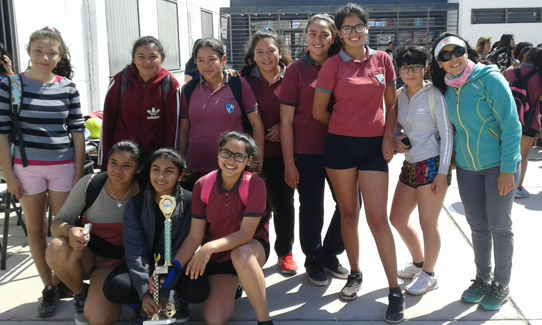 Campeonas. Las chicas integrantes de la Escuela "Augusto Pulenta", de la categoría Sub-14, que se consagraron campeonas en su categoría e irán al Provincial.