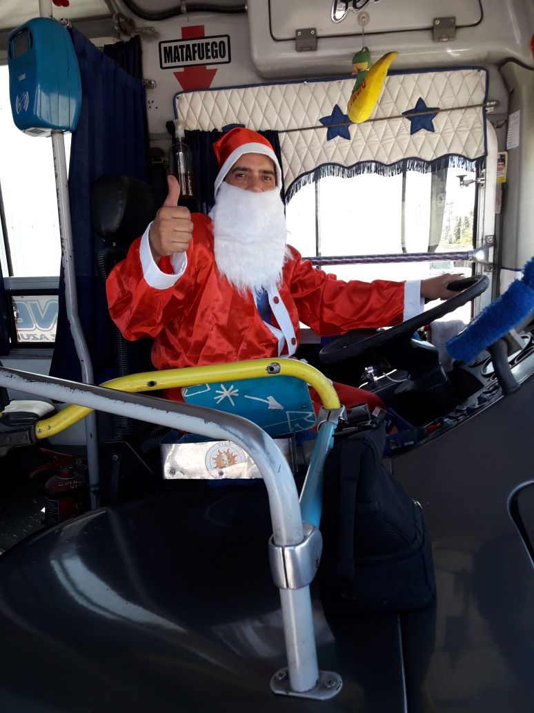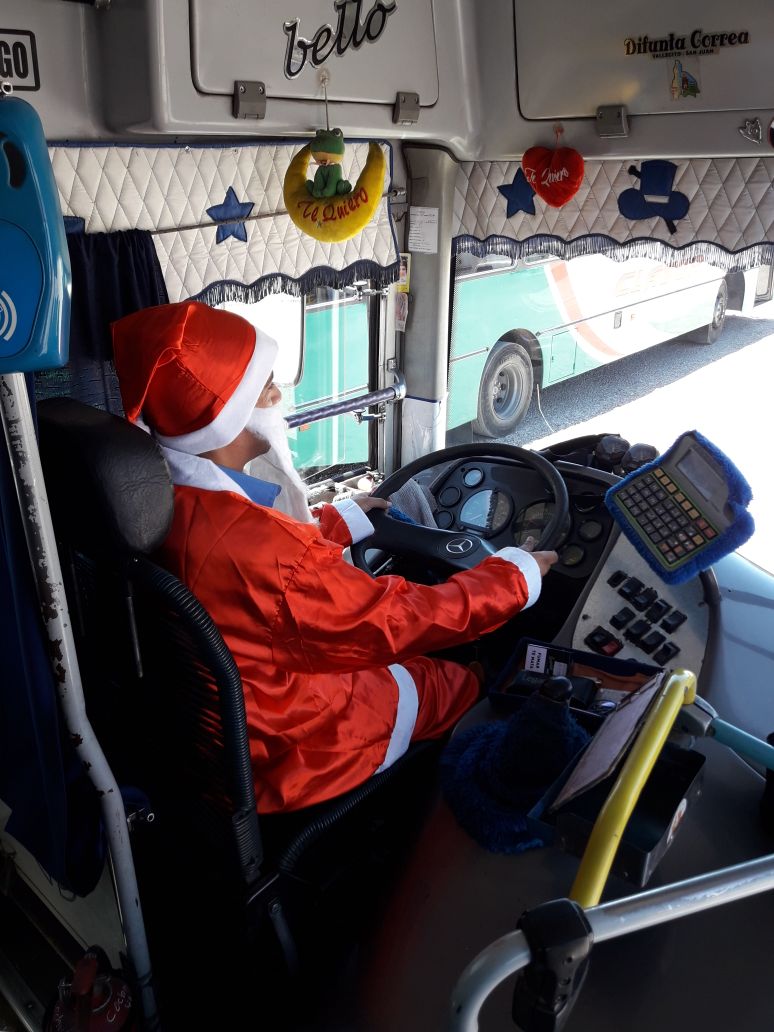 En la mañana de este domingo de Nochebuena, Lucas Lobos tuvo un gran gesto. Se disfrazó de Papá Noel y así cumplió con su jornada laboral como chofer del colectivo 62 de la línea 36, de la empresa Clausur.