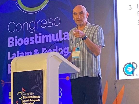 Prometeo Sánchez, del Colegio de Posgrado en Ciencias Agrícolas de México, habló sobre estrés abiótico. "El estrés climático, es tremendo. El fenómeno de El Niño es importante. Nosotros debemos prevenir. El estrés en la planta puede tener estimulación, con trabajo antes del mismo, aguantará mucho mejor este fenómeno. Primero aprender a conocer el clima, estudiar. Luego conocer bien nuestra planta, el vegetal en cuestión, de lo que yo vivo. Y saber del daño del estrés. En el caso de la sequía, me debo preparar para la seca; debo contrarrestar eso. Donde lloverá demasiado, cuidar las fertilizaciones. Hacer biocontrol favorecerá en algunos casos. Hay que saber qué aplicar, por ejemplo algas marinas para hongos; microorganismos para resistencias; aminoácidos para prevenir enfermedades, etc".