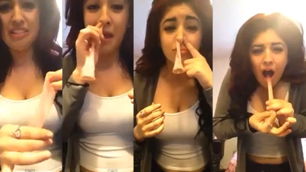 Como puede observarse en los videos, los jóvenes se colocan un profiláctico en una de sus fosas nasales e inhalan, con mucha fuerza y dolor, hasta que logran sacarlo por su boca.