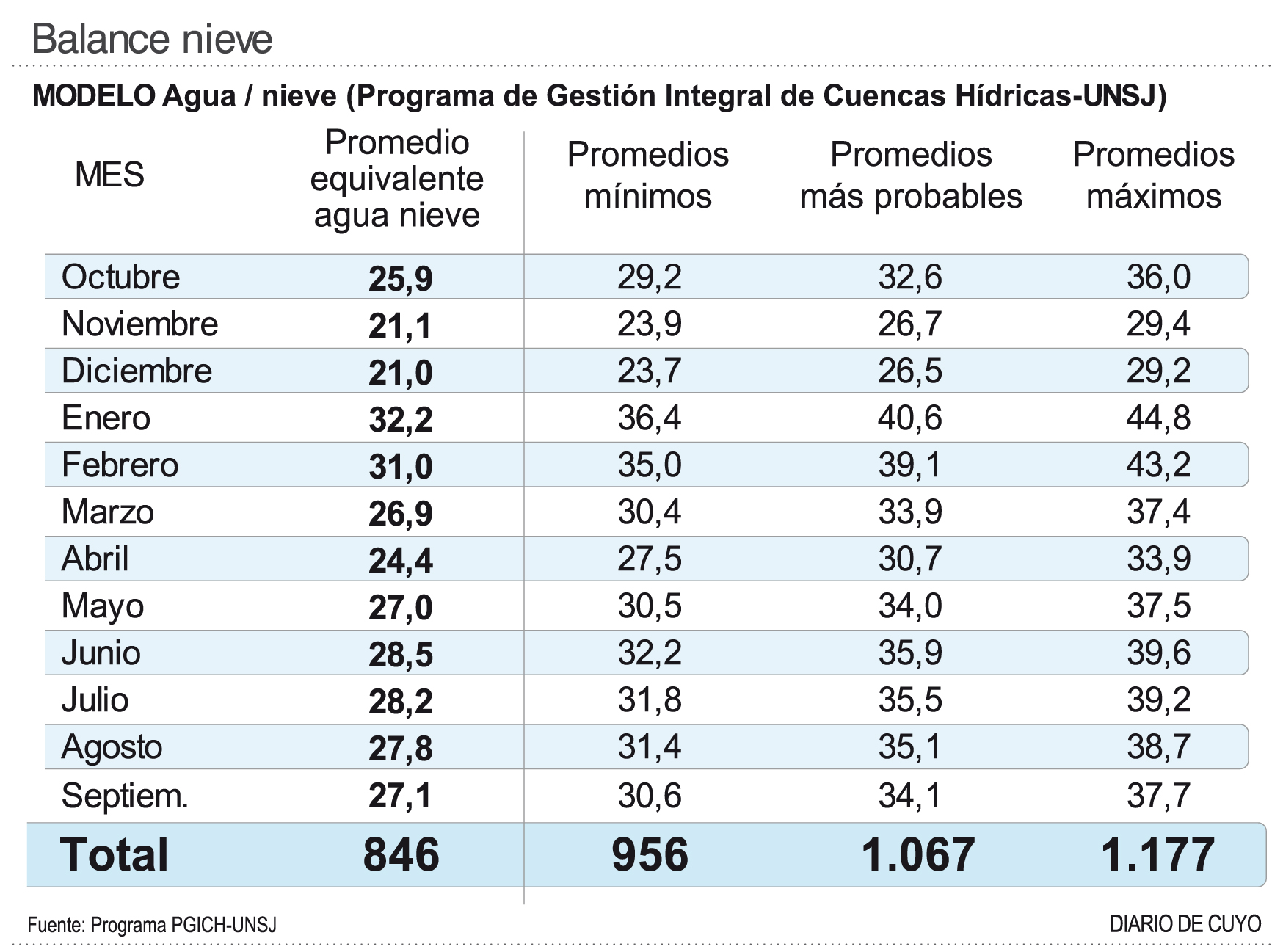 Todo un tema cuando Caracoles, por ejemplo, "está muy por debajo de su cota operativa mínima. Está en 1.030 msnm con sólo unos 20 hm3 almacenados". Es más, según Hidráulica al 1 de octubre sólo contaban las 3 principales presas del principal río sanjuanino con un volumen de 240,25 hm3.