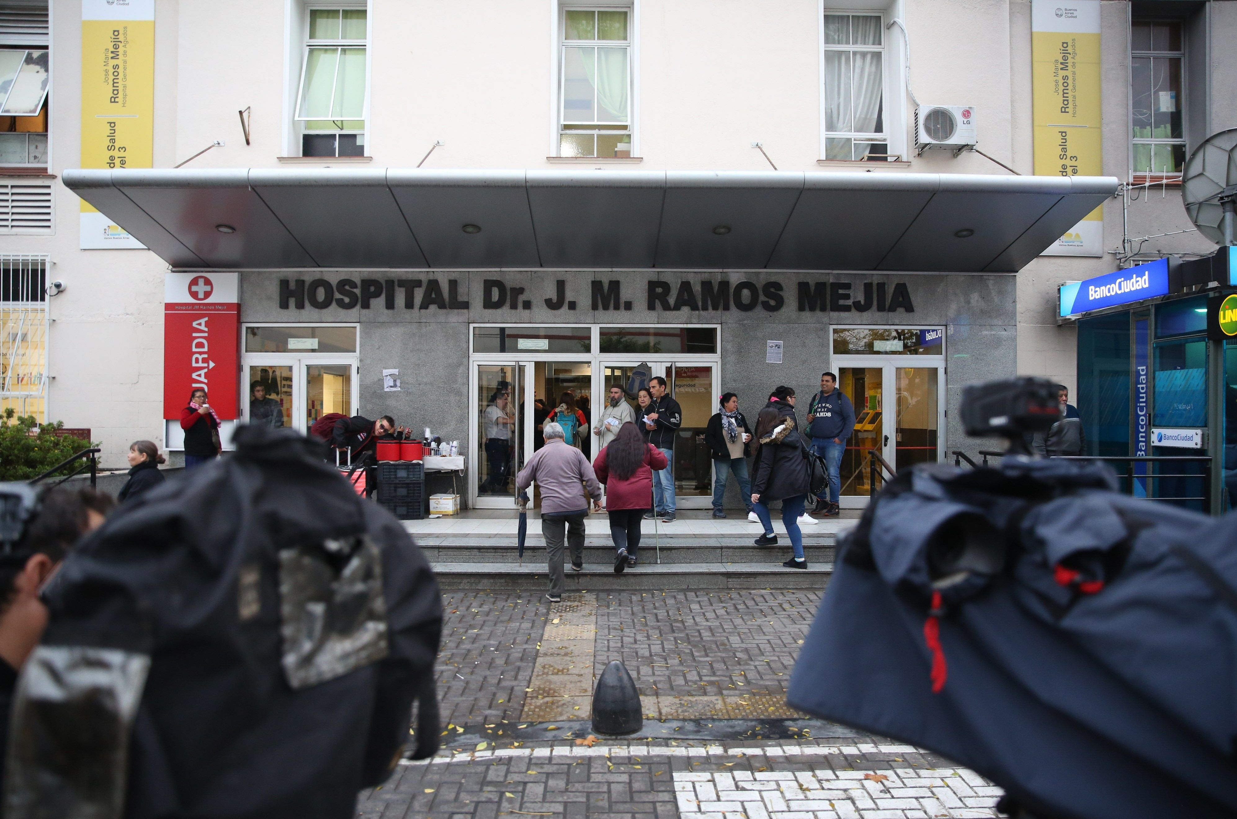 Herido. El frente del hospital Ramos Mejía, donde permanecía grave el diputado radical herido el jueves pasado en la ciudad de Buenos Aires.