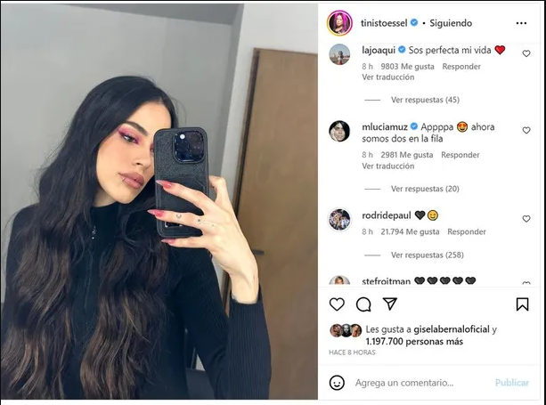 En el posteo, “la triple T” mostró su nuevo color de pelo, un tono más oscuro con destellos castaño claro, y sólo añadió un emoji de corazón negro en la descripción, dejando una gran cuota de intriga a sus seguidores.
