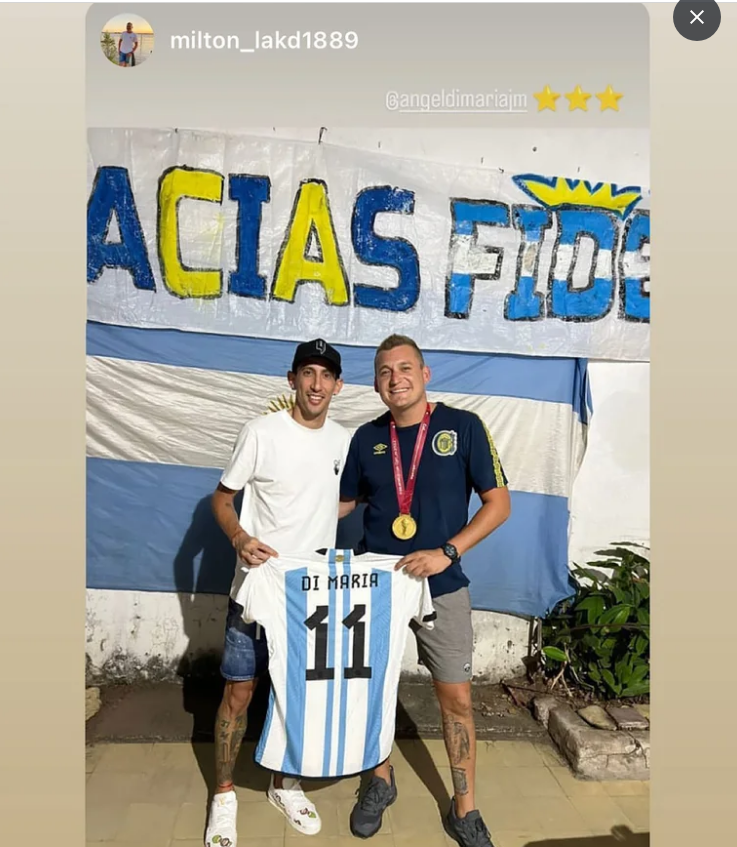 Uno de los presentes grabó el momento en el que el autor del segundo gol de la final frente a Francia llegó al hogar donde se realizó la reunión: al grito de “Dale campeón, dale campeón” se armó un pequeño pogo en el humilde patio antes de que arranquen los abrazos personales. El jugador de la Juventus llevó la camiseta que utilizó en el último cotejo y la medalla dorada para que se puedan sacar fotos junto a él. “Con los de siempre️. Amigos de toda la vida. Eterna amistad”, redactó Di María en Instagram sobre el encuentro.