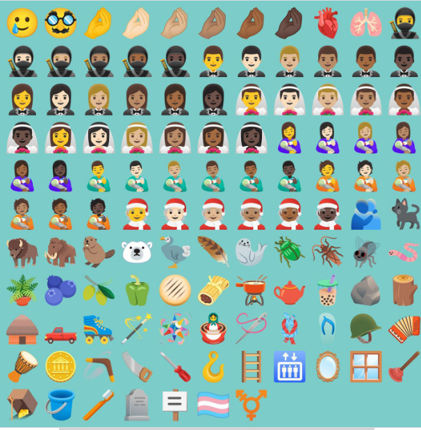 “Emoji 13.0” incluye 117 nuevos diseños, entre los que destacan personas con esmoquin, ninjas, diversos Papá Noel con varios colores de piel, focas y hasta una cara con anteojos, nariz grande y bigote. Todas estas novedades están disponibles en los dispositivos con el sistema operativo Android 11, la actualización más reciente de la plataforma para celulares y tablets.