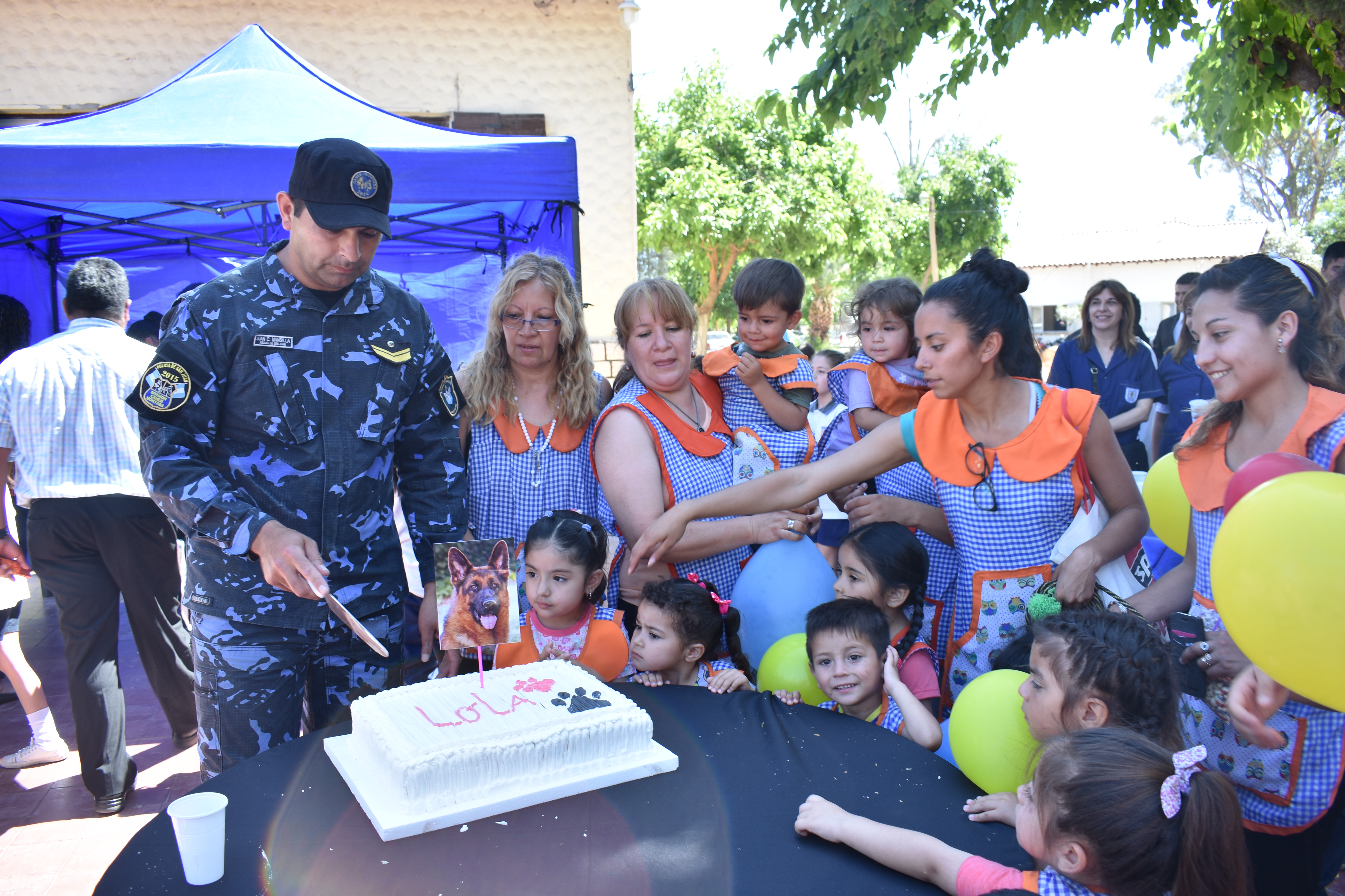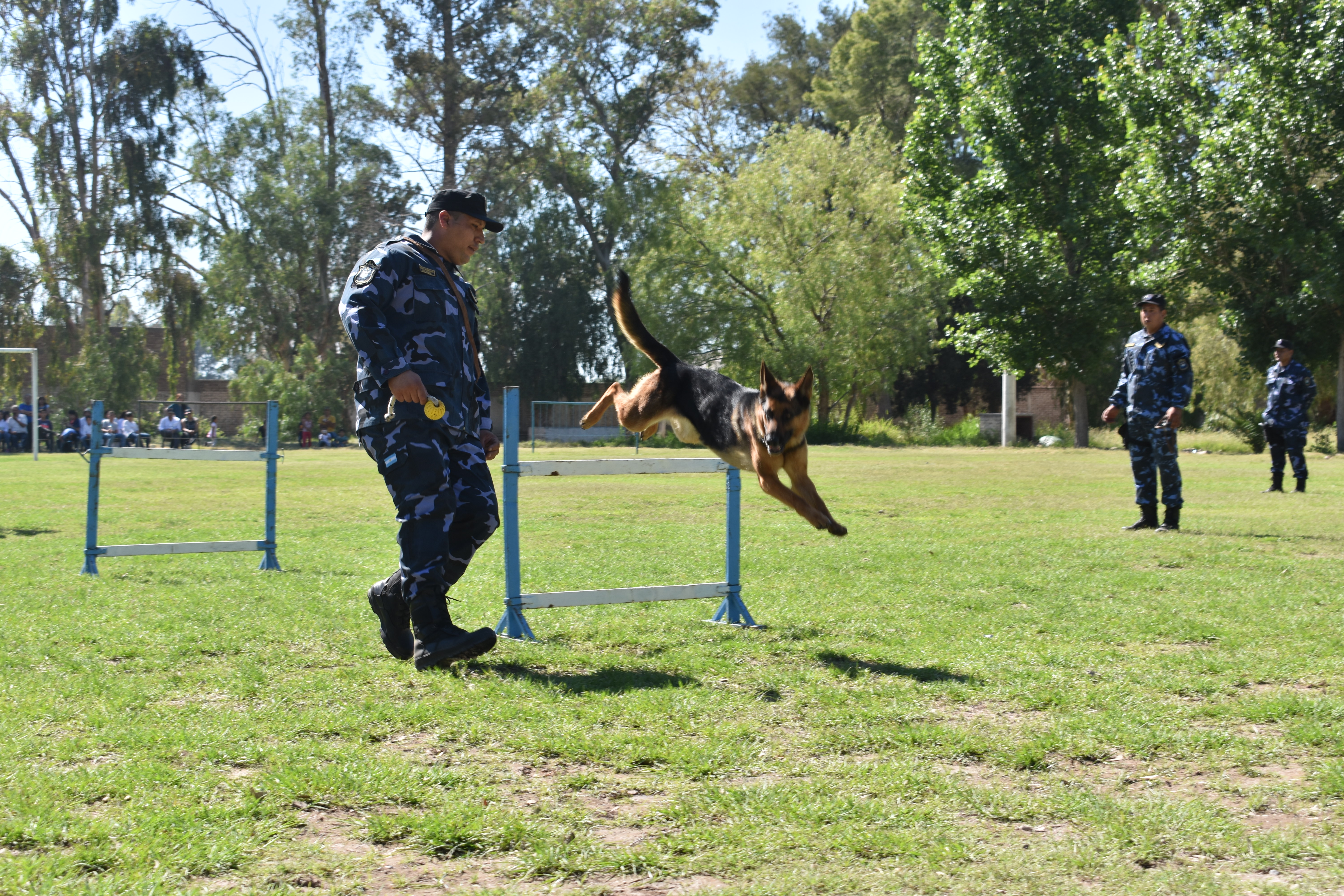 Frente la atenta mirada de 300 alumnos de diferentes escuelas de Rivadavia y Chimbas, los canes realizaron su última exhibición antes de recibir su jubilación en las Fuerzas.