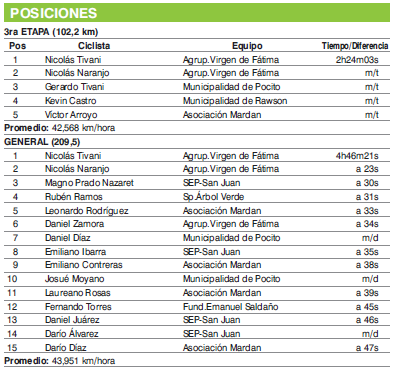 ‘Hicimos un gran trabajo. Todos los chicos se portaron de maravillas’, expresó en todos los micrófonos que se encontró Nicolás Tivani. El brillante ganador de la XX Vuelta al Valle Fértil se mostró satisfecho por haber respondido a las expectativas de sus compañeros. ‘Estoy feliz por haber ganado y porque no defraudé la confianza que me dieron mis compañeros’, confió.