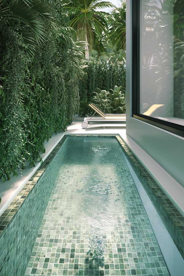 Los tonos oscuros se asocian a la seriedad, la elegancia y la pulcritud. Los revestimientos de color negro le darán a la pileta un aire moderno y minimalista, intenso y profundo.