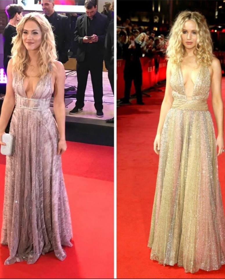 Eso no sucedió con Flor Vigna y Luz Cipriota. “Cipriota usó exactamente el mismo vestido que usó Vanesa Lorenzo y pareciera que Flor Vigna fue al diseñador, peluquero y maquillador con la foto de Jennifer Laurence en la mano”, sostuvo Andrada.
