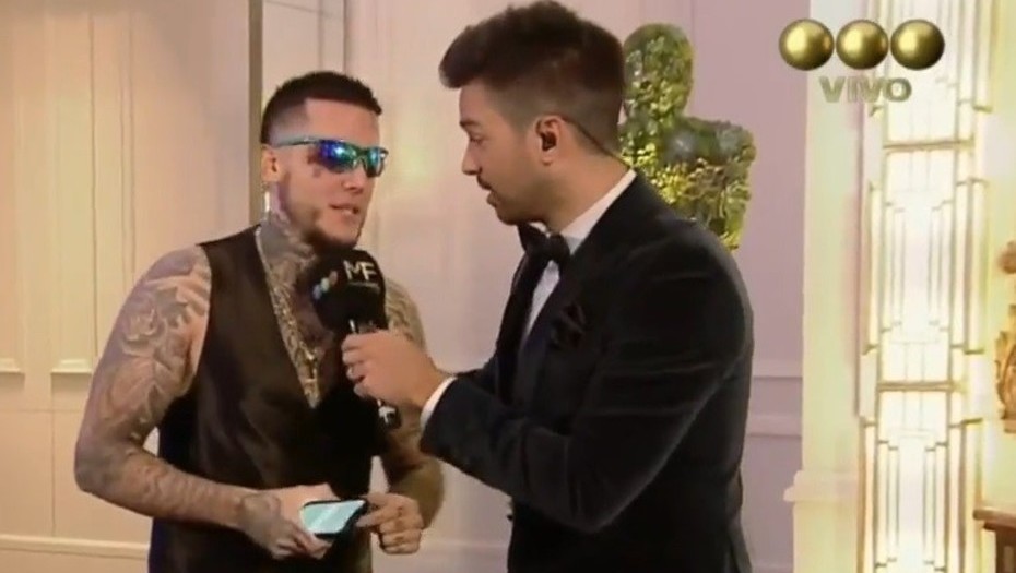 Con un look muy llamativo, chaleco de vestir sin remera abajo, pantalón corto y medias largas, Alex se tomó la nota muy relajado. Mientras el Chino le preguntaba, el cantante de reggaetón no soltaba el celular porque intentaba conectarse al Wi-Fi. "Sí, ahí enganché".