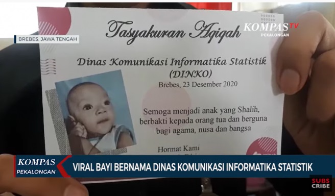 Y así fue, por lo que decidió bautizarlo con el nombre de Dinas Komunikasi Informatika Statistik (Departamento de Comunicación Estadística) en honor a su puesto de trabajo.