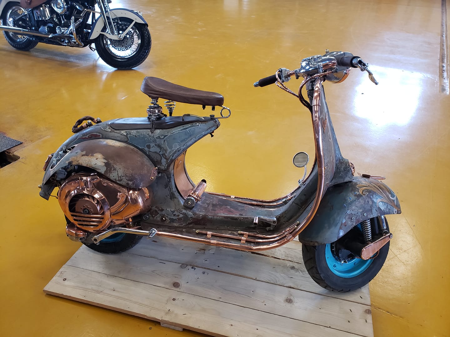 “Es una Vespa con un estilo de ficción retrofuturista con accesorios de color cobre y bronce, lo que la hace muy llamativa. Es un cuadro de una Vespa 56, con un motor de nueva línea. Es una moto muy potenciada en lo que es motor, pero con una apariencia totalmente vieja que es lo que la hace rara. Con Miguel estuvimos trabajando más de tres años en esa moto”, dijo.