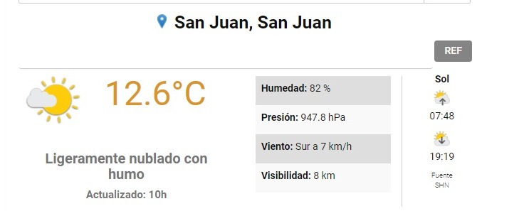 Durante buena parte de la mañana, y según el informe del Servicio Meteorológico Nacional, el cielo sanjuanino estuvo “Ligeramente nublado con humo” y con visibilidad reducida.