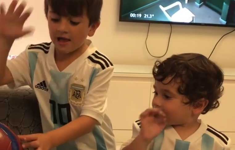 Thiago tiene 5 años y Mateo 2. El más grande está muy parecido a Antonela y el “del medio” es un calco de “La Pulga”. Ciro es el bebé de la familia. ¿Alguno de los tres o los tres será o serán futbolistas?