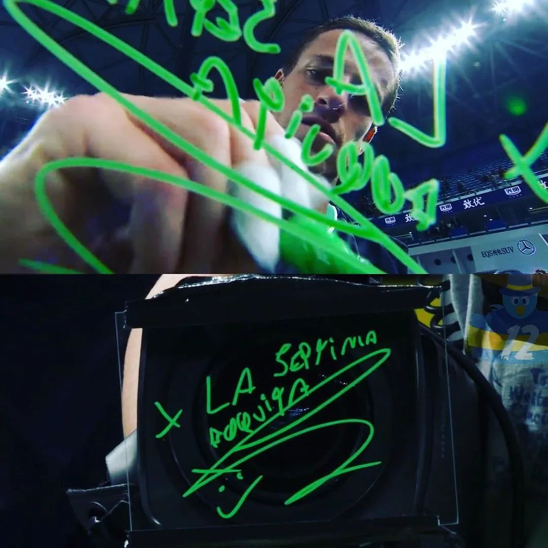 En esta oportunidad, el tenista firmó una de las cámaras que transmitió el partido y, en vez de estampar su firma, pidió por la Copa Libertadores, competencia donde el Xeneize es finalista. "Por la séptima, Boquita", escribió con un fibrón.