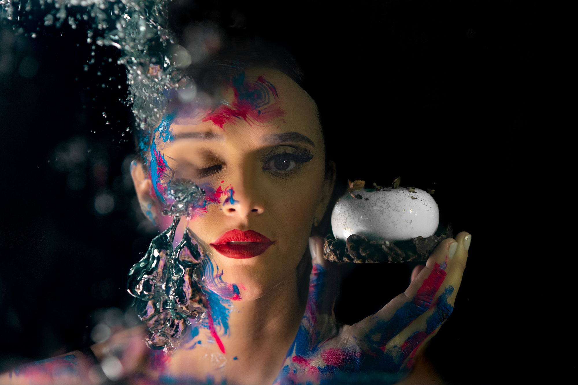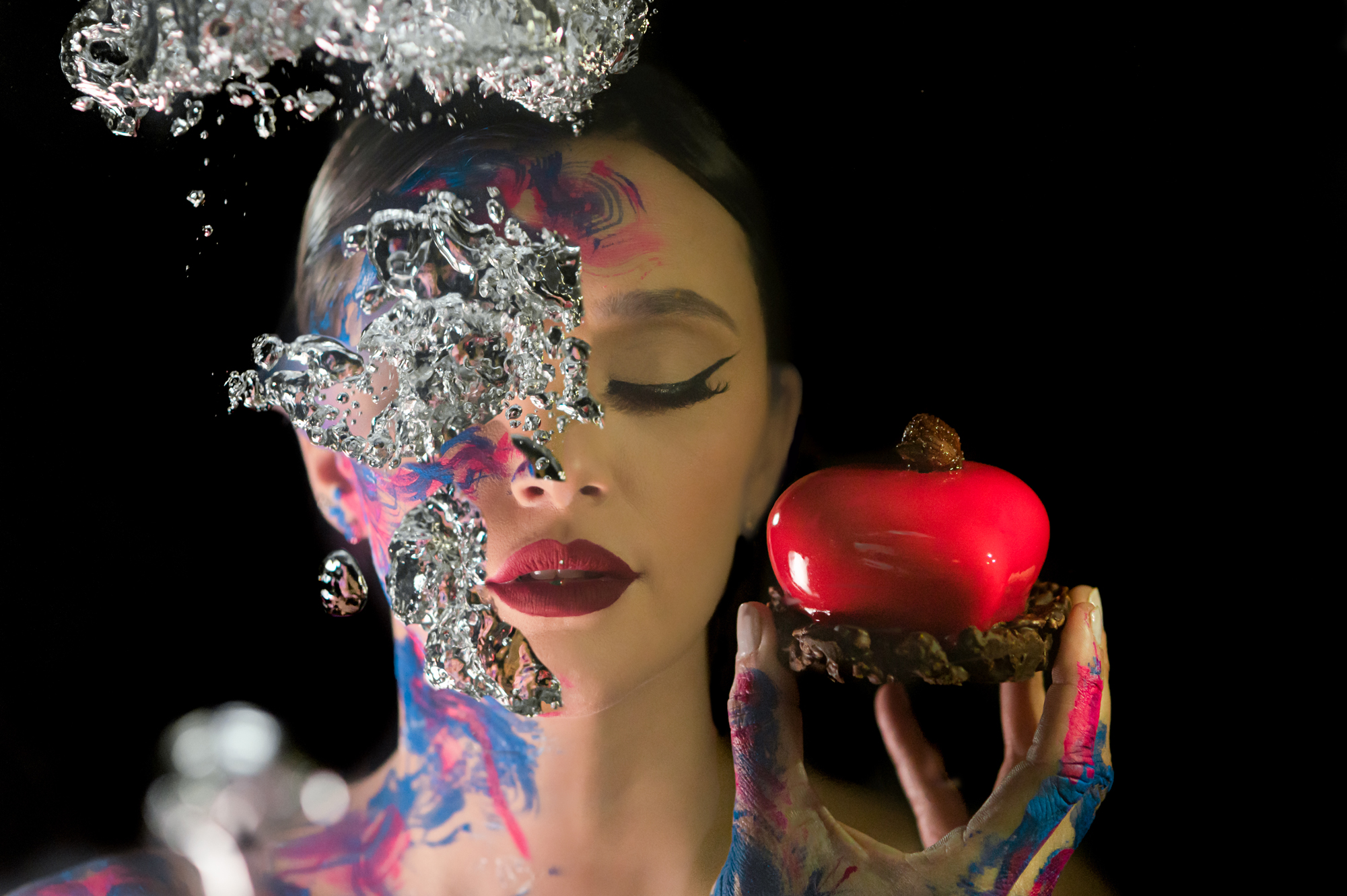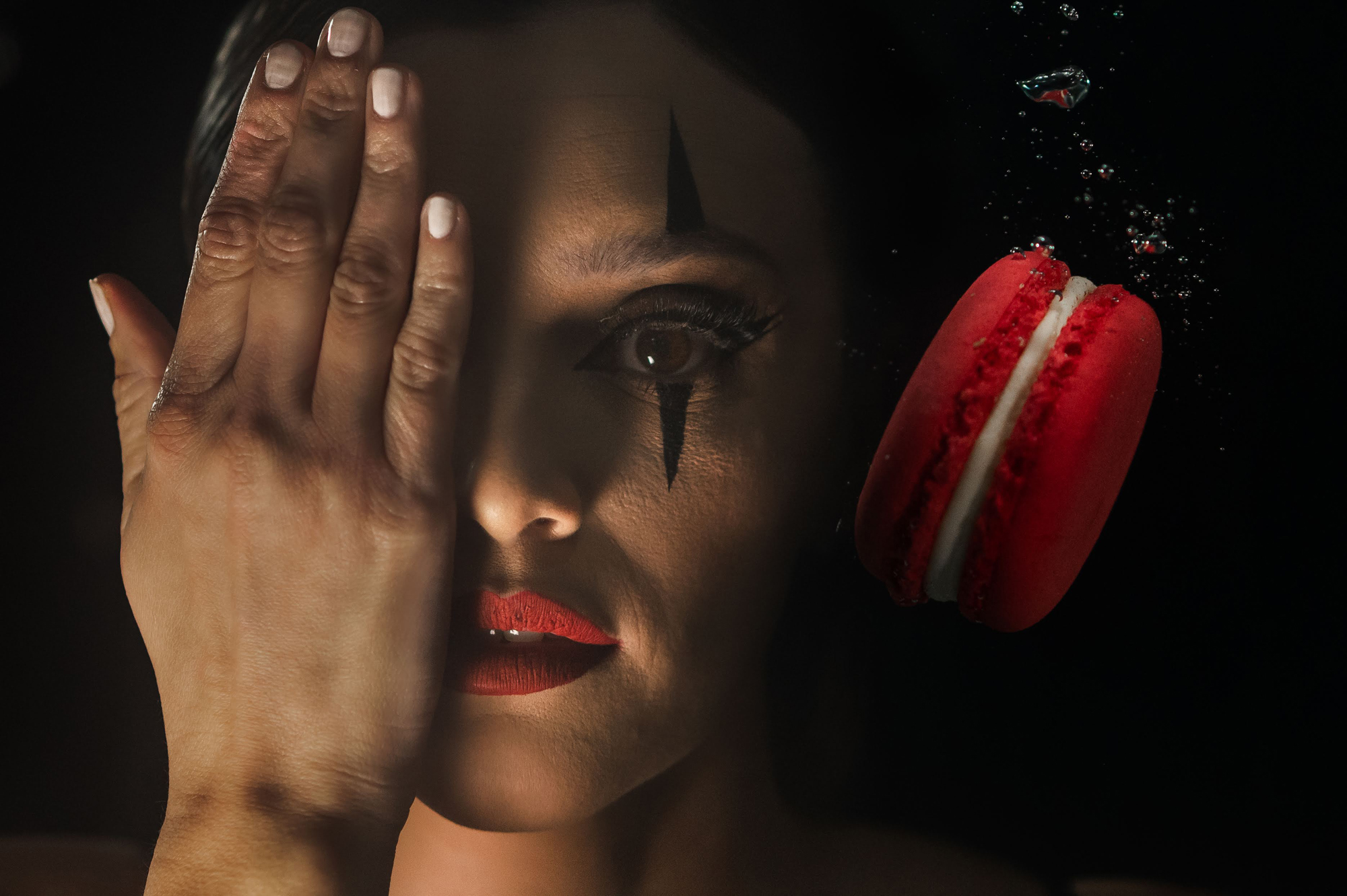En medio de ese trabajo interno apareció la pastelería y algunos rubros industriales como fuente de inspiración y de supervivencia, también. Al fin y cabo, los productos dulces terminaron por seducirlo cuando un experto, Leandro Tripolone, le pidió imágenes de sus mini postres y macarons, para promocionar en sus redes sociales. Por supuesto que aceptó gustoso. Y ahí fue que se decidió a incursionar en ese arte. Con el pastelero y su amiga Paula Delgado de modelo, inició una producción que lo animó a mostrarse. Es una selección de fotos conceptuales y abstractas que, sometidas a una técnica conocida como triple exposición (tres fotos que se hacen en el mismo momento y se superponen y que luego tienen un tratamiento digital, explica De Vecchis), conjugan algunas masas finas con el agua, la liviandad, el aire, la mujer, los colores. Y es la segunda parte de Ingravitto, la muestra que le abrió las puertas a otro modo de hacer fotografía pero fundamentalmente a generar un espacio para él y sus colegas en distintas "vidrieras de San Juan".
