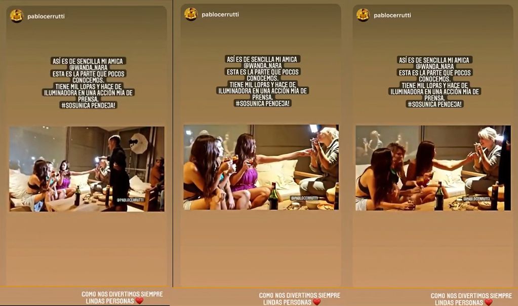 Lo cierto es que, a mas de dos meses del llamado “Wandagate”, Chaves, que no dio muchas declaraciones públicas al respecto, volvió a dar señales de que se inclina a favor de la empresaria, a pesar de que por mucho tiempo supo tener una gran relación con Suárez. Así al menos se pudo ver en una story que subió el agente de prensa Pablo Cerrutti, y que compartió Wanda. Allí se la ve a Paula, María y Zaira grabando una publicidad en la casa de la mediática, que además de anfitriona ofició de iluminadora. “Así es de sencilla mi amiga Wanda Nara. Esta es la parte que pocos conocemos. Tiene mil lopas y hace de iluminadora en una acción mía de prensa. ¡Sos única, pendeja!”, destacó Cerrutti en el video en el que las cuatro se mostraron muy compinches.