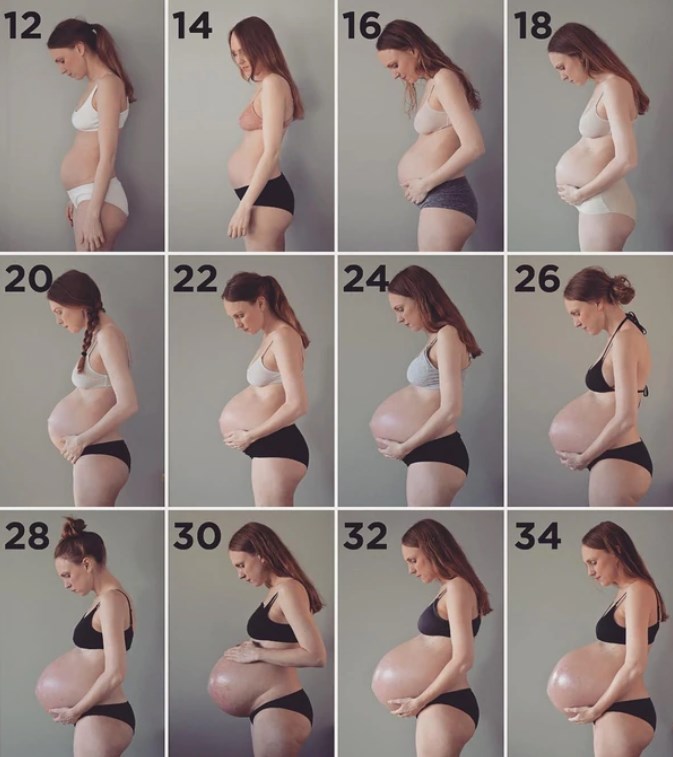 En la semana 12 empezó a notarse el embarazo. En la 18, ya tenía una panza completamente formada. En la 26, parecía estar por parir. Y en la 34, a punto de explotar.
