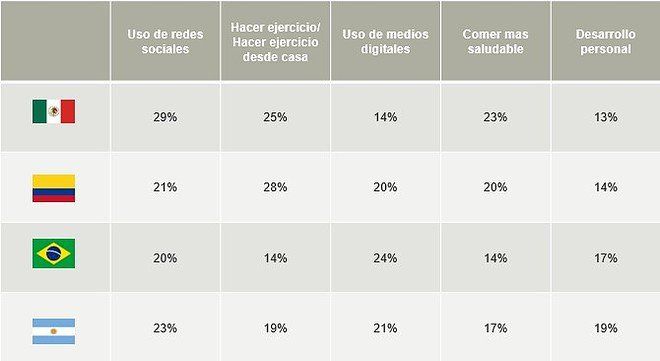 Por otro lado, Colombia es el país donde las personas pasan mayor tiempo en casa con la familia (33%), seguido de México (30%). Mientras que Brasil (29%) y Argentina (28%) son los que menos pasan tiempo con los suyos.