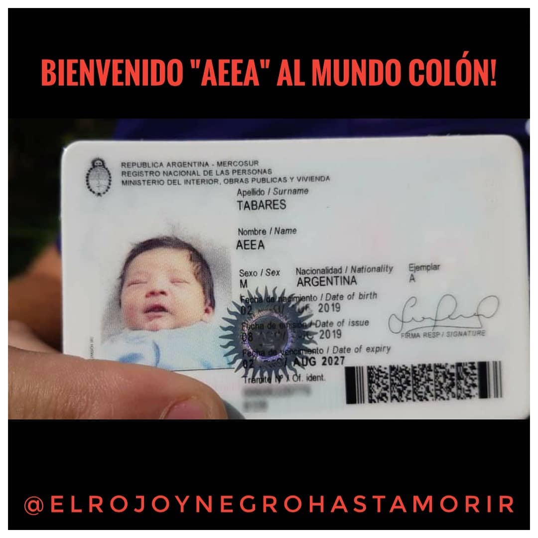 Este simpatizante le puso AEEA a su hijo y la foto del documento se volvió viral, ya que hace referencia a la canción de la banda santafesina que hizo delirar a todo el mundo. La cuenta @elrojoynegrohastamorir le dio la bienvenida a "AEEA".
