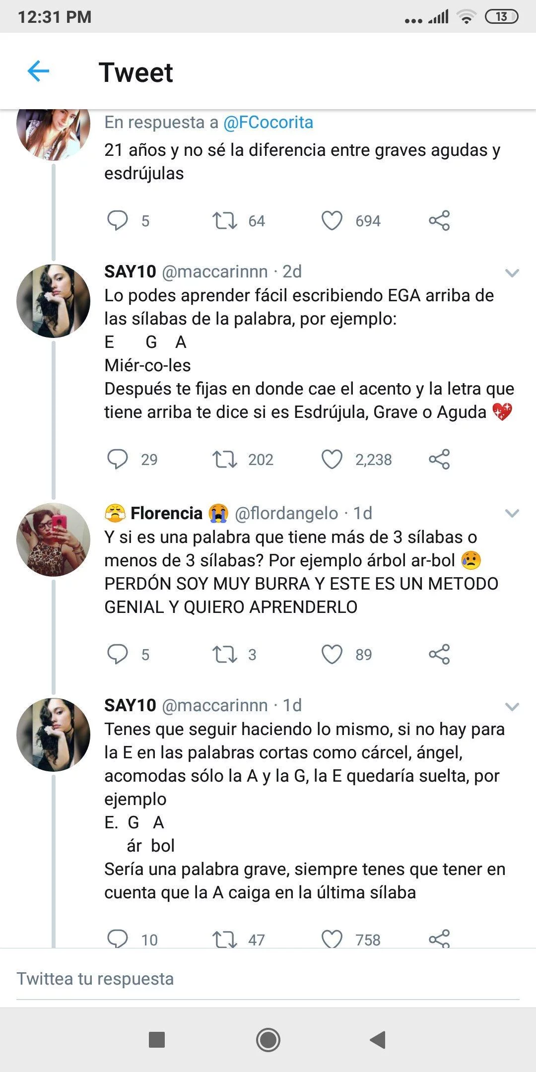 "21 años y no sé la diferencia entre graves, agudas y esdrújulas", escribió. Al rescate llegó SAY10, @maccarinn, con su método "EGA".