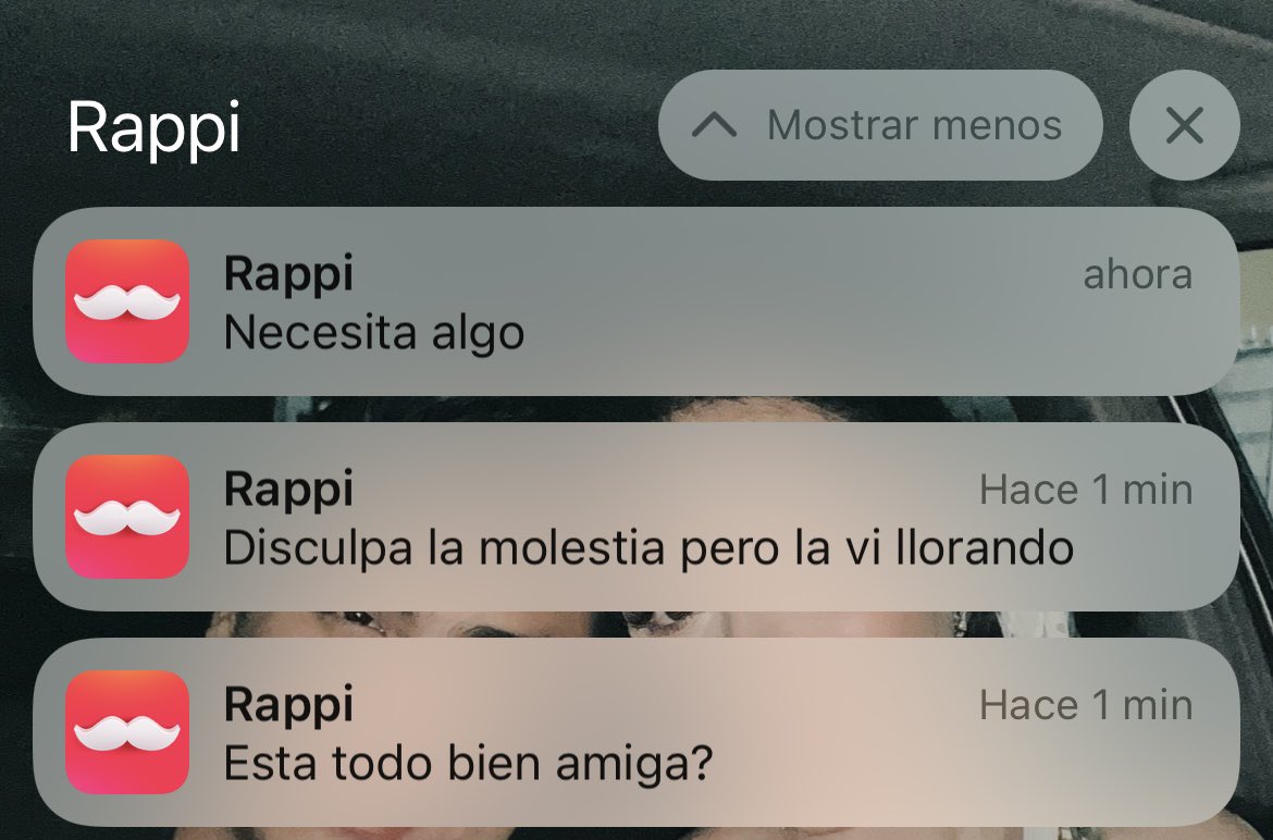 Al parecer, cuando recibió el pedido, la muchacha no estaba pasando por sus mejores días y el repartidor lo notó. “¿Está todo bien amiga? Disculpa la molestia, la vi llorando”, fue el mensaje que le envió después de unos minutos de irse al preocuparse por la situación. Y le preguntó si necesitaba ayuda en algo.