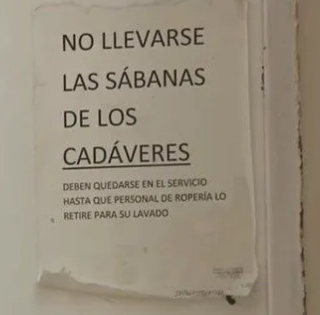 El insólito pedido de un hospital cordobés se volvió viral en las últimas horas. El nosocomio implicado es el Hospital Rawson, ubicado en la capital provincial, y en el ingreso a la morgue puede leerse un pedido: "No llevarse las sábanas de los cadáveres".