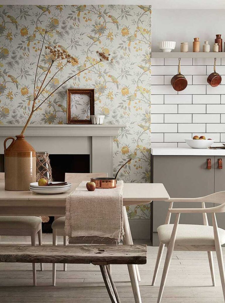 Adiós a las paredes en blanco, no habrá pared que no esté revestida en papel o con pinturas efecto cemento o mortero. Los papeles vivirán su época dorada en 2023 además, los veremos en todo tipo de estancias y estilos decorativos, tales como dormitorios y baños, aunque con patrones más pequeños y discretos. Se mantendrán los estampados de flores y tejidos que imitan a las fibras naturales como la rafia.