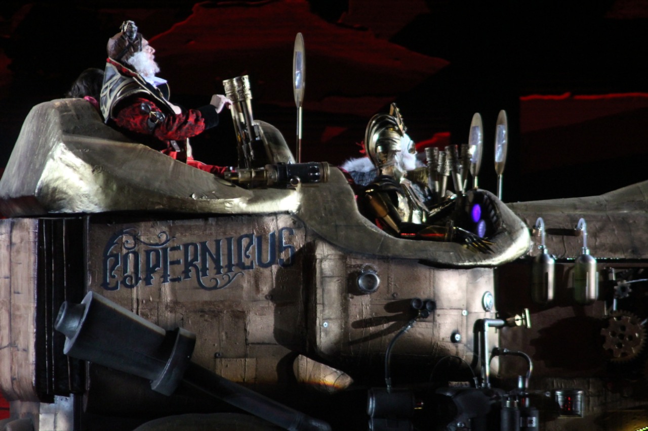 Con música original y voces en vivo por primera vez en la historia del show final de la fiesta, 550 artistas se movieron sin pausa y con gran expresión frente al enorme arco con engranajes internos de relojes que dominó la escenografía.