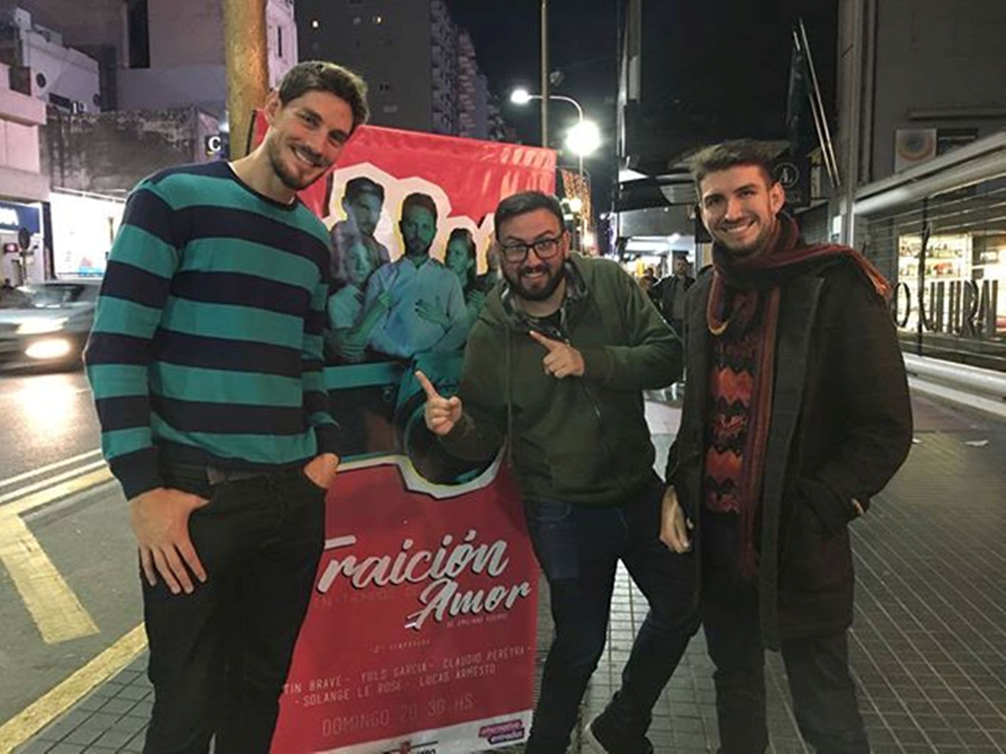 Lucas Armesto (en la imagen junto a compañeros de teatro en calle Corrientes, con la obra) confesó que hizo algunos castings para publicidad. Y recordó que una vez quedó muy cerca de ser la cara de una publicidad de Paso de los Toros. “Era un comercial de un jugador de fútbol talentoso, que enamoraba a la hinchada, al técnico, a todos, hasta que el Flaco Schiavi lo bajaba con una entrada bien fuerte, al piso. El slogan era Cortá con tanta dulzura. Fui pasando etapas y quedamos seleccionados dos, pero quedó el otro actor. Igual, tengo la ilusión de que alguna vez voy a poder protagonizar una publicidad”, dijo.