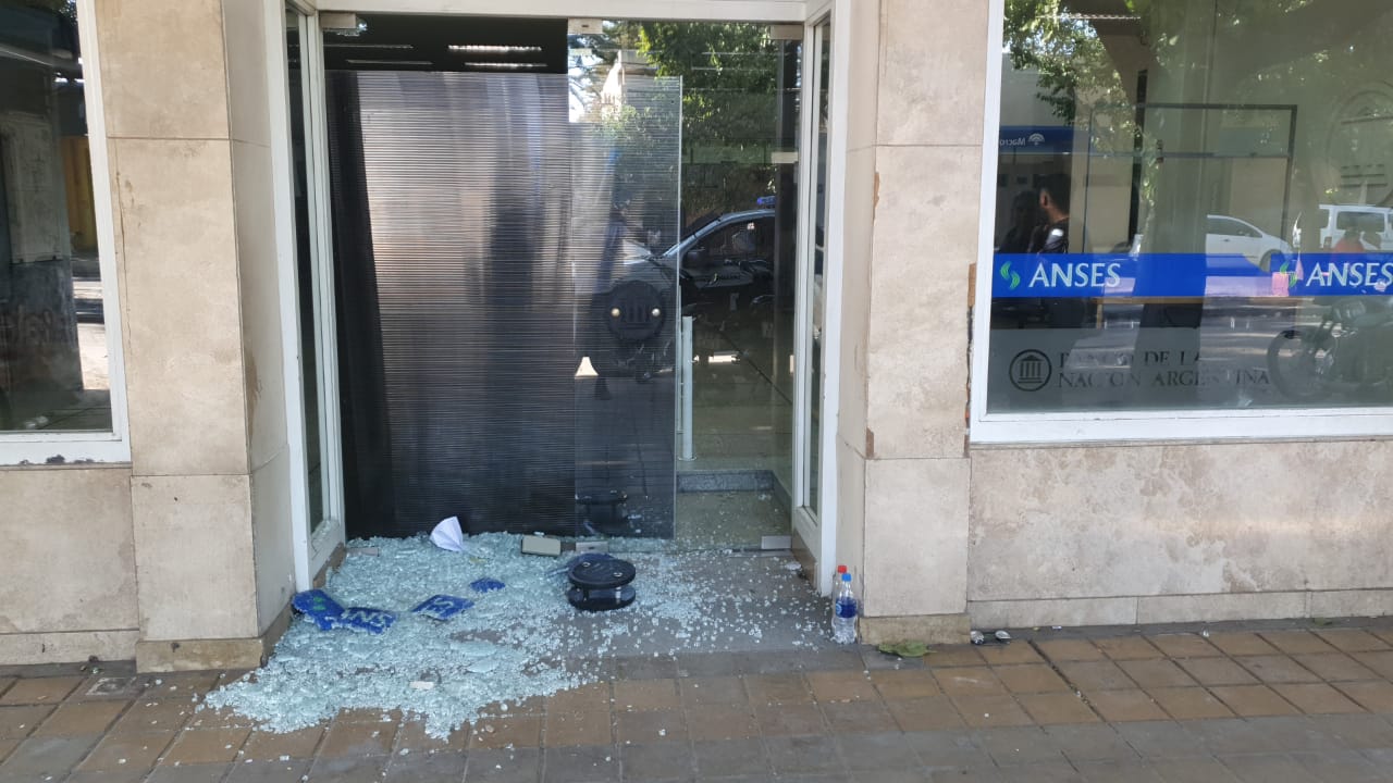 Otro capítulo fue el de los destrozos. Se reportaron varios daños, como el techo de un puesto de diario donde se subieron, la puerta de ingreso de una oficina de ANSES.