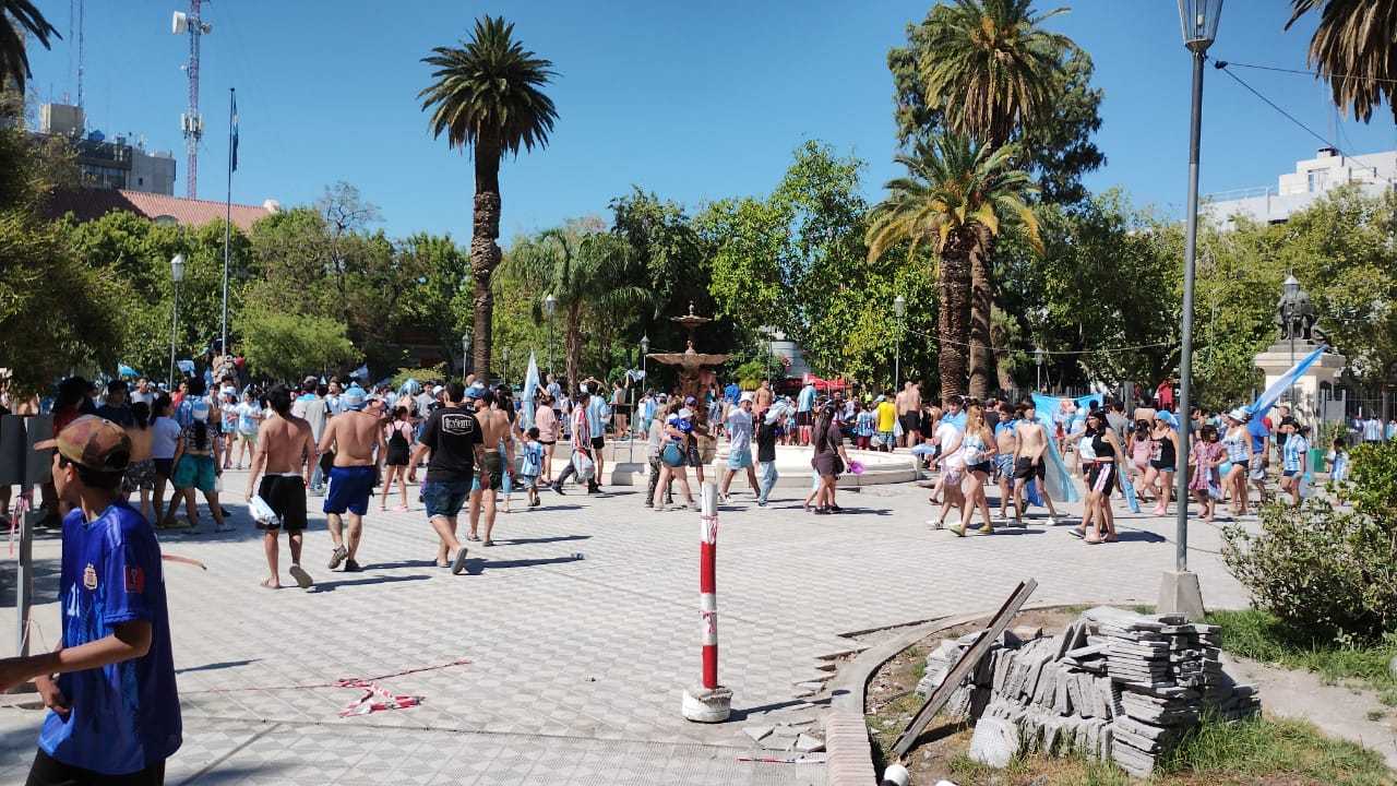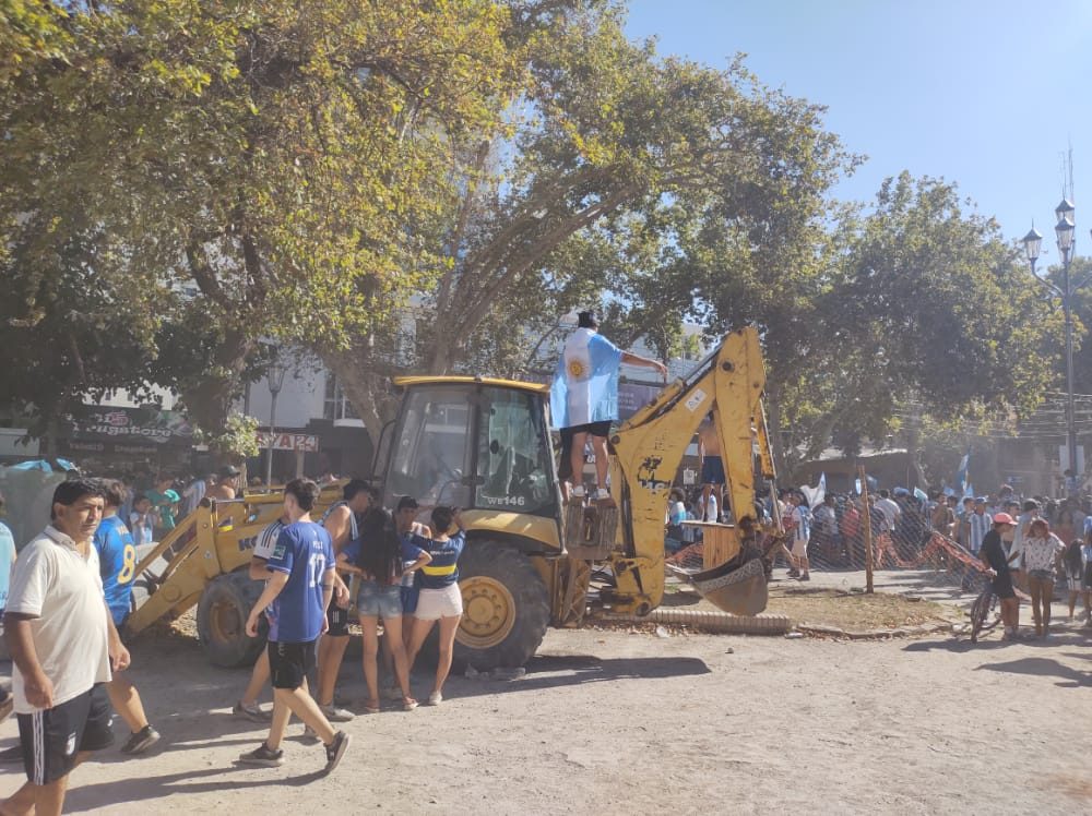 Y un tema que resultó peligroso fue que al ser muy endeble la tela perimetral de las obras de la Plaza 25 y ser tan grande la cantidad de gente, no pasaron ni 20 minutos de los festejos para que se metieran al interior, caminaran entre los escombros, baldosas flojas y se subieran hasta en las máquinas.
