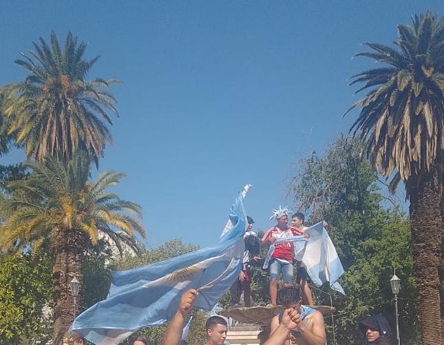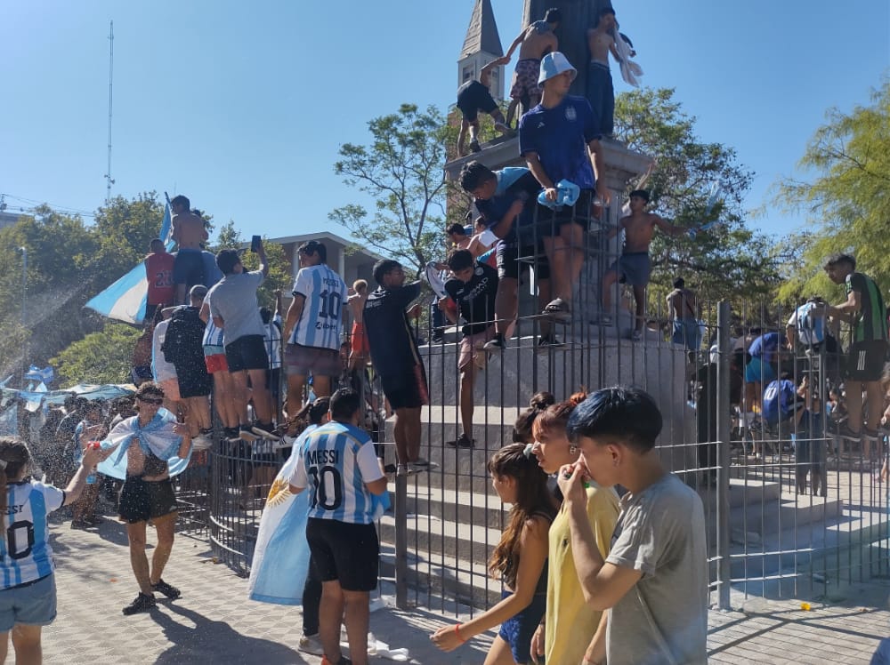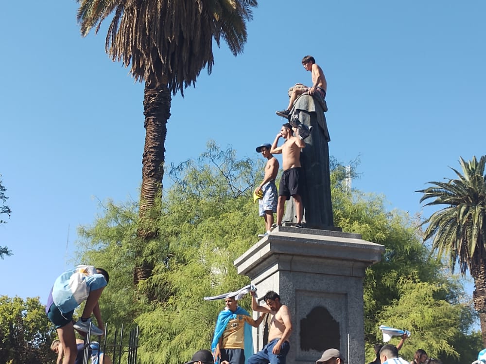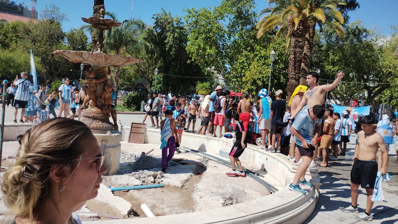 Dentro de ese sitio cada uno hizo lo que quiso, como por ejemplo subirse a la emblemática fuente de finales de 1800. En el perímetro hubo algunos desubicados que se subieron a los indicadores de las calles, carteles, semáforos y estatuas.