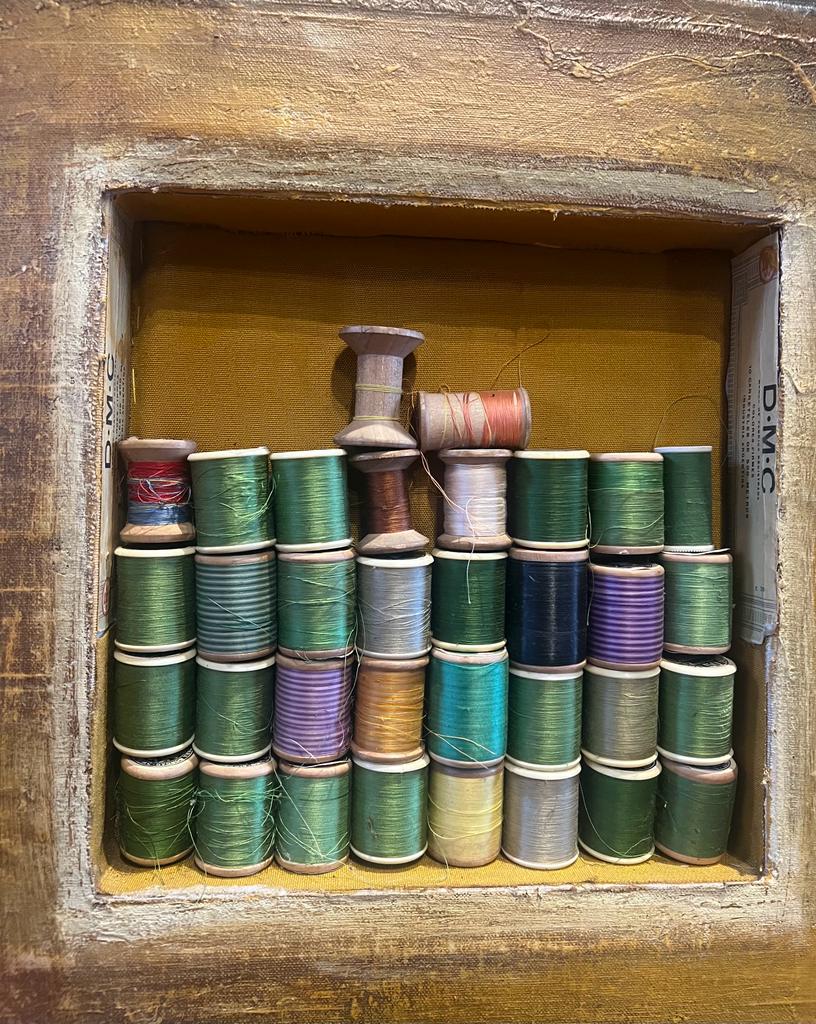 Consciente de lo que valoraba ese material y de lo tanto que disfrutaba de las manualidades -su mamá fue ama de casa y le encantaba, además de los bordados, amasar el pan y hacer dulces con los frutales de la estancia y transmitirles a sus hijos todos los valores de la iglesia luterana, tanto que antes de la cena, todos los días, entonaban cánticos e himnos de la iglesia acompañados por el armonio o el violín que interpretaba su papá- es que no dudó ni un minuto en transformarlos en materia prima para obras de arte que honraran toda esa historia familiar.