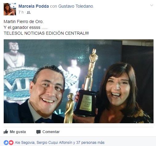 Anoche se llevó a cabo la entrega de los premios Martín Fierro para los programas del interior del país y Telesol, en la que fue su primera nominación, arrasó. Y es que no sólo el canal se alzó con con el galardón en la categoría TV Informativo por la edición central del noticiero, sino que además se quedó con el Martín Fierro de Oro.