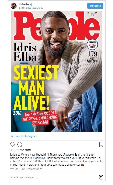 Idris Elba fue elegido por la revista People como "el hombre vivo más sexy del mundo" del 2018. El actor británico de 46 años recibió tal mención, la misma que años atrás obtuvieron Mel Gibson, Denzel Washington, entre otros.