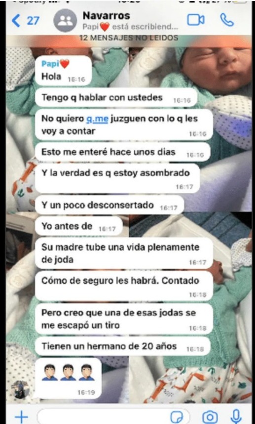 Seguidamente de esos mensajes, vino la confesión que dejó heladas a la joven y al resto de su familia: “yo antes de su madre tuve una vida plenamente de joda, como de seguro les habrá contado. Pero creo que en una de esas jodas se me escapó un tiro. Tienen un hermano de 20 años.”